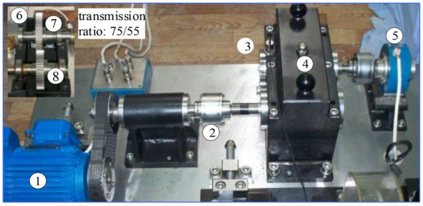 斜齿轮故障模拟试验台采集斜齿轮故障数据集,如图5所示。实验主要检测齿面磨损(TSW)和齿根裂纹。其中TSW包含两种故障模式,齿根裂纹包含四种故障模式,加上正常状态,共有7种故障模式,实验结果如表2和图7所示。
