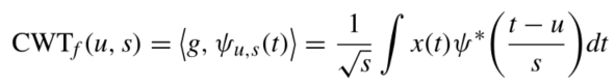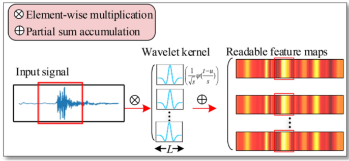 CNN中的卷积运算在信号处理中可以表示为两个向量的内积,连续小波变换(CWT)同样是基于内积的一种著名信号处理方法。信号g = x(t)的CWT可以通过计算与小波基函数Ψu,s*(t)的内积来实现,可以表示为