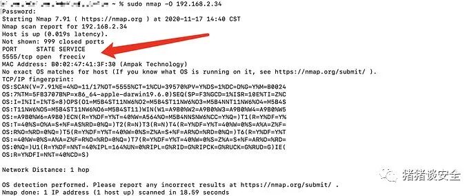 发现开了5555,之前对这个端口没了解过,就百度了一下发现是adb服务,刚好看到一篇文章(https://www.cnblogs.com/guaishoujingling/p/11101649.html)是打靶机,不过看到说是2016年的洞了,也没想能利用成功,就msf用了一下: