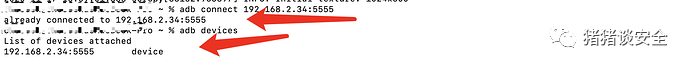 安装成功后连接目标:adb connect 192.168.2.34:5555