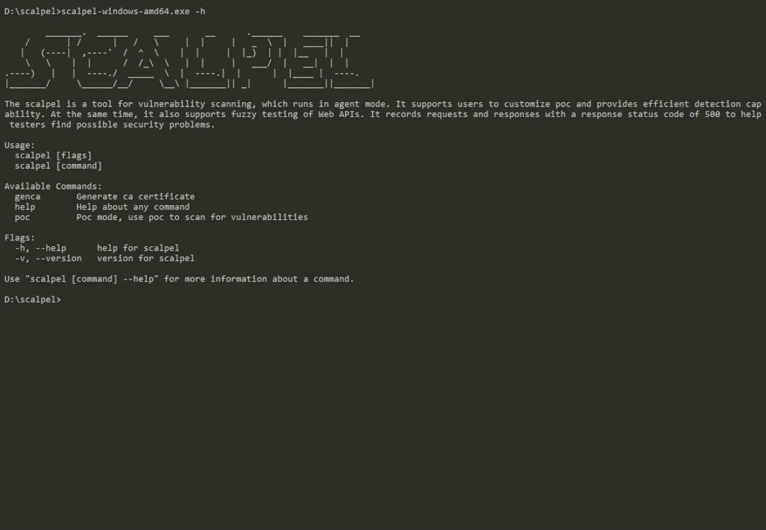 .\scalpel-windows-amd64.exe poc -l 127.0.0.1:8888 -f poc.yaml -o vuln.html