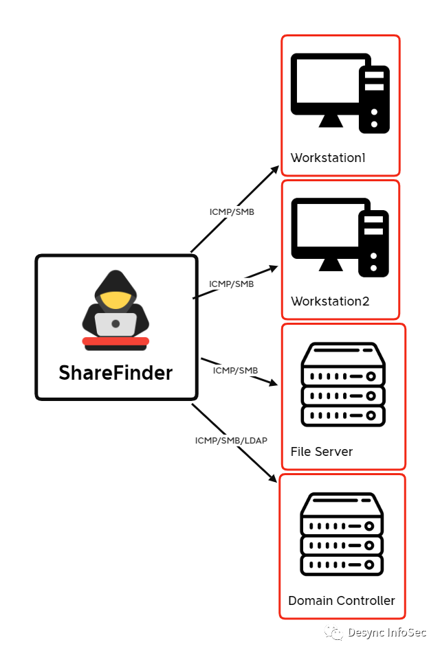 由于上述原因,作为防守方我们必须能够主动检测未授权网络共享探测行为,这样才能减轻数据泄漏和其他由未授权网络共享导致的其他风险,例如勒索软件。在本报告中,我们将分析一个常见的用于发现网络共享的工具——PowerShell脚本Invoke-ShareFinder,下文统称为“ShareFinder”。我们将深入讨论Invoke-ShareFinder探测网络共享的行为特征,帮助防守方在网络环境中检测Invoke-ShareFinder和与其功能相似的其他工具。