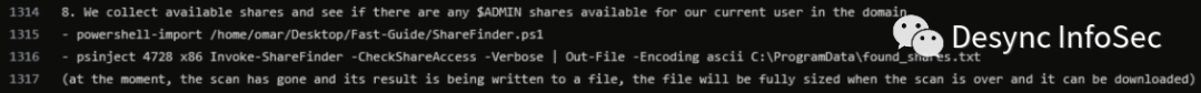 Invoke-ShareFinder -CheckShareAccess -Verbose | Out-File -Encoding ascii C:\ProgramData\shares.txt"我们在Conti泄漏资料