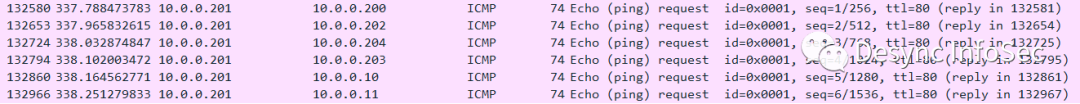 ShareFinder支持使用-Ping参数,对多个目标进行存活探测。与上述SMB流量一致,ICMP存活扫描也是一对多的访问行为。