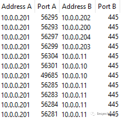 SMB请求是一对多的访问方向,从单一的源IP到多个目的服务器IP