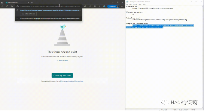 Microsoft Forms 漏洞:反射式跨站点脚本 (XSS)