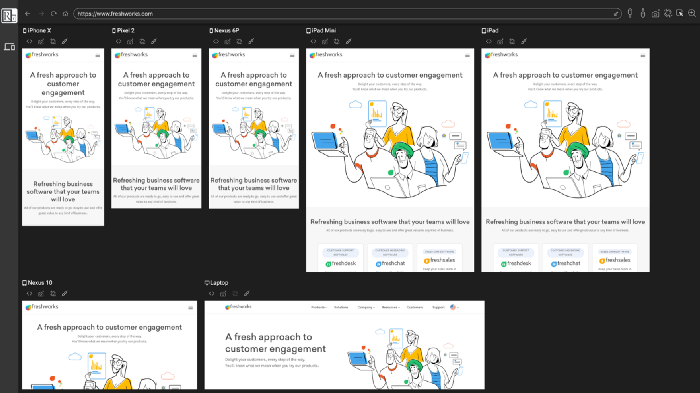 Responsivelyapp 可以帮你在单个窗口中并排预览你的网站在各种目标设备和屏幕尺寸的效果。此外,也镜像了交互效果。这意味着任何一个屏幕上发生的行为,也会被镜像到其它屏幕上。从屏幕截图到可定制布局,再到元素检查器,Responsively 应有尽有。它甚至还支持热加载。