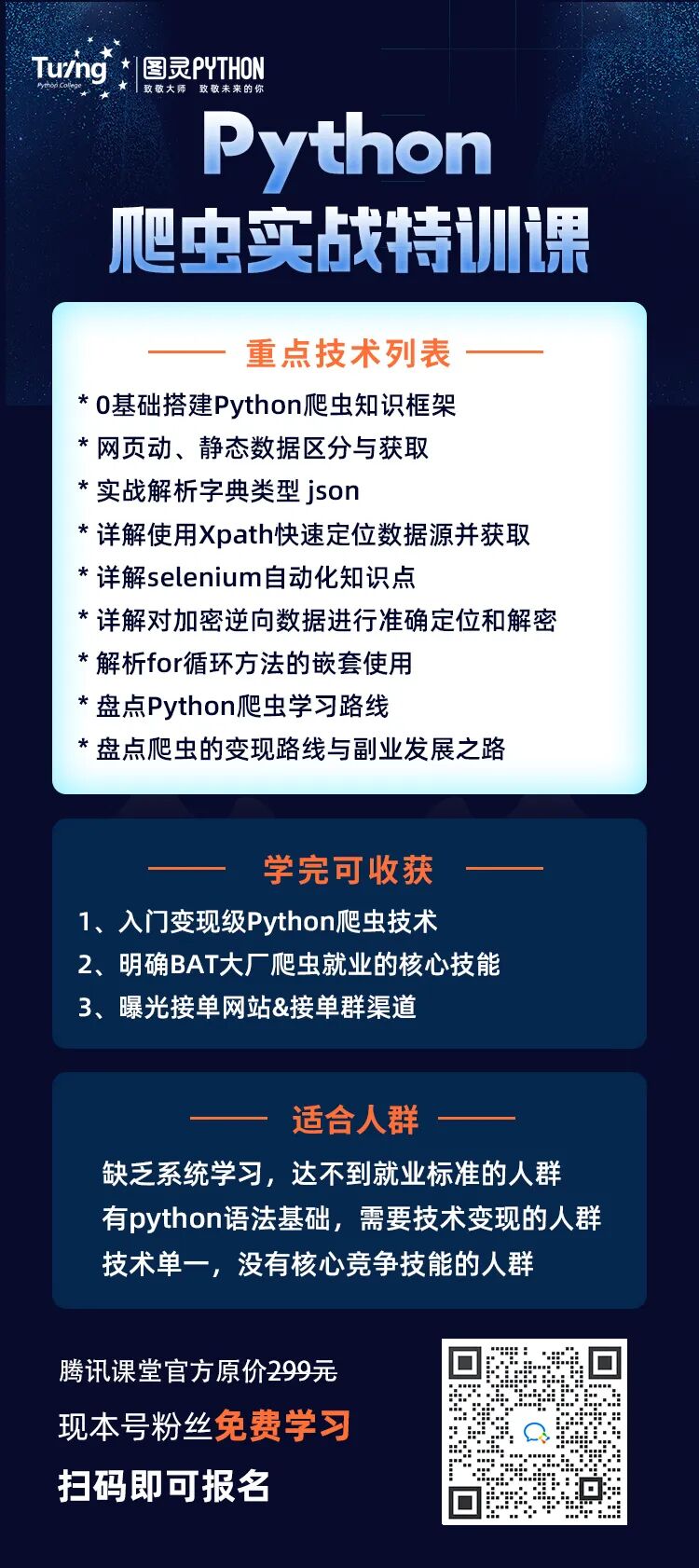 想要快速学好爬虫,尤其是可以用于变现的高阶爬虫技术,我推荐大家直接来腾讯课堂学习Python技术实战特训课。
