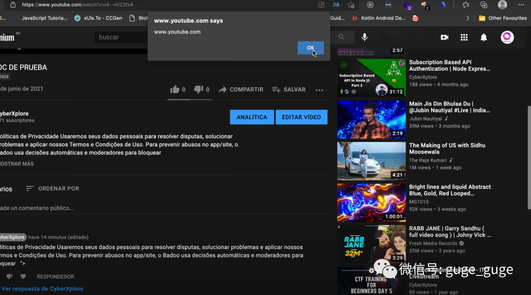 Youtube → 创建了一个Youtube视频,输入了一个带有xss Payload +不同语言的评论,任何使用 Edge 浏览器观看该视频的人都被攻击