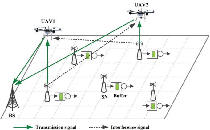 考虑到上述因素,我们研究了两种多无人机场景下的面向区域的数据采集问题,每个传感器节点(SN)根据其采样模式以固定或随机间隔的环境状态进行采样,并将包含最新采样信息的更新包存储在其缓冲区中。传感器节点的更新数据包由多个能源受限的无人机交付。在第一种情况下,部署一个代理(例如,基站(BS))来收集实时的全球网络信息,并根据收集到的信息对无人机的飞行方向和数据收集做出适当的决策。在第二种情况下,每架无人机都充当一个代理,并根据局部观测结果独立地做出自己的决策。本文采用学习方法研究了多无人机辅助数据采集问题,并在每个时隙的系统状态下根据最优策略选择无人机的飞行方向。主要贡献: