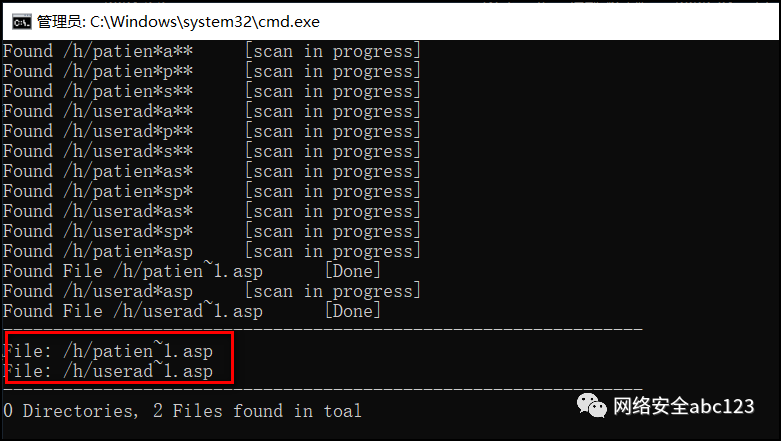 这个案例来源于一次医疗行业的红队评估项目。如下图所示:通过IIS短文件名猜解,得到了如下两个短文件名(为了防止泄露项目信息,截图都来源于本地搭建的环境,原图就不贴出来了)