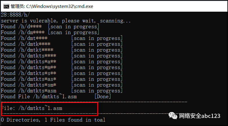 接下来看另一个稍微难一点的案例,扫描出一个真实文件名/h/dmtkts~1.asm