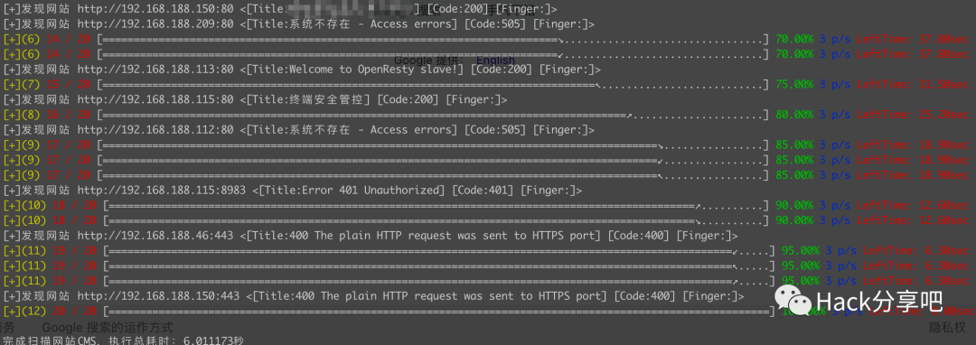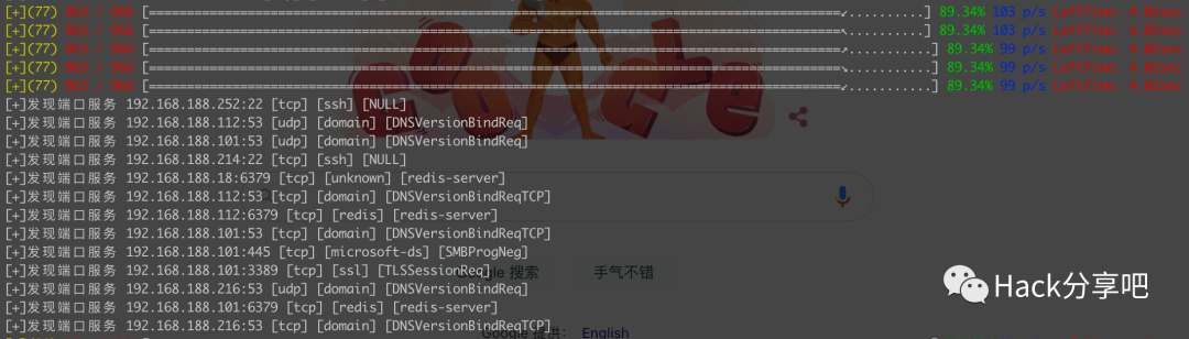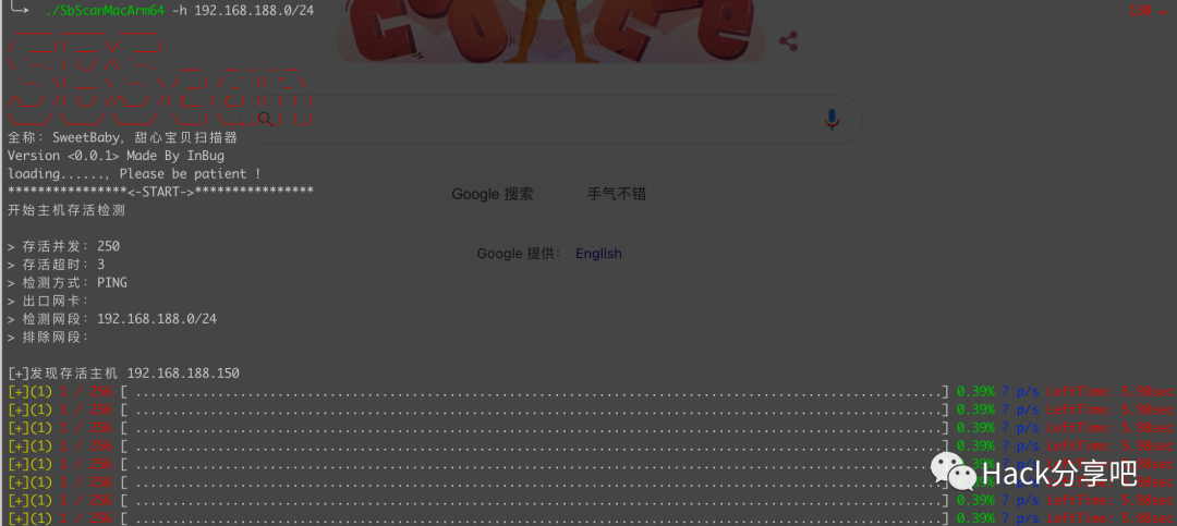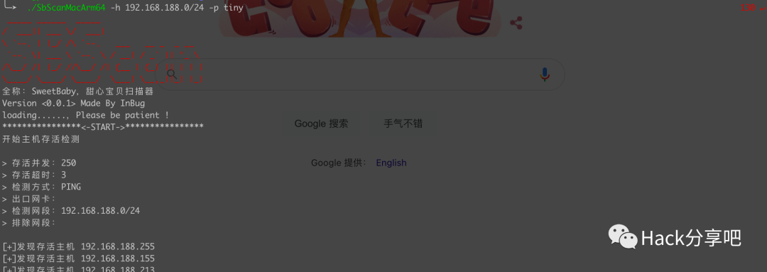 ./SbScan -h=192.168.188.1/24根据指定IP+端口扫描