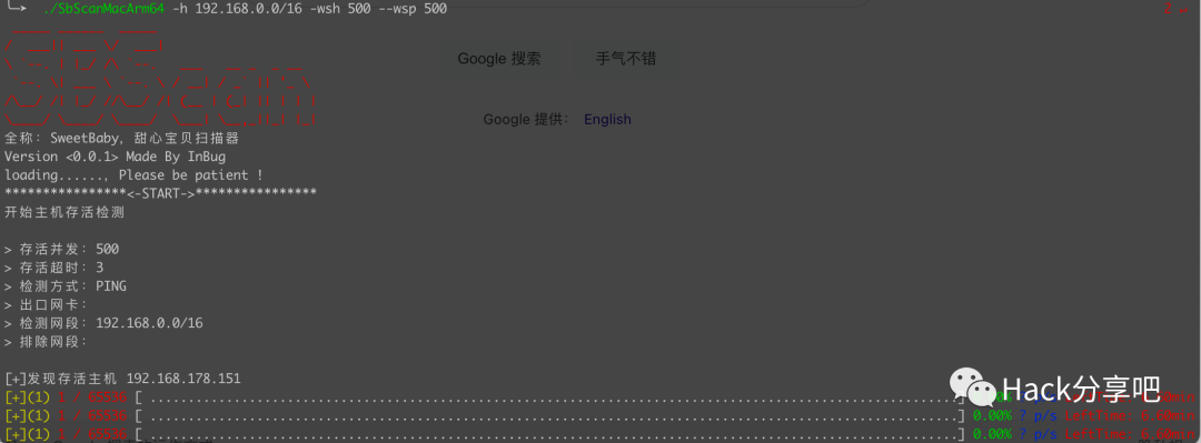 ./SbScan -h 192.168.0.0/16 -wsh 500 --wsp 500端口扫描可以写端口号、端口范围或者常用端口类型