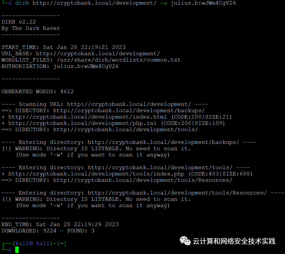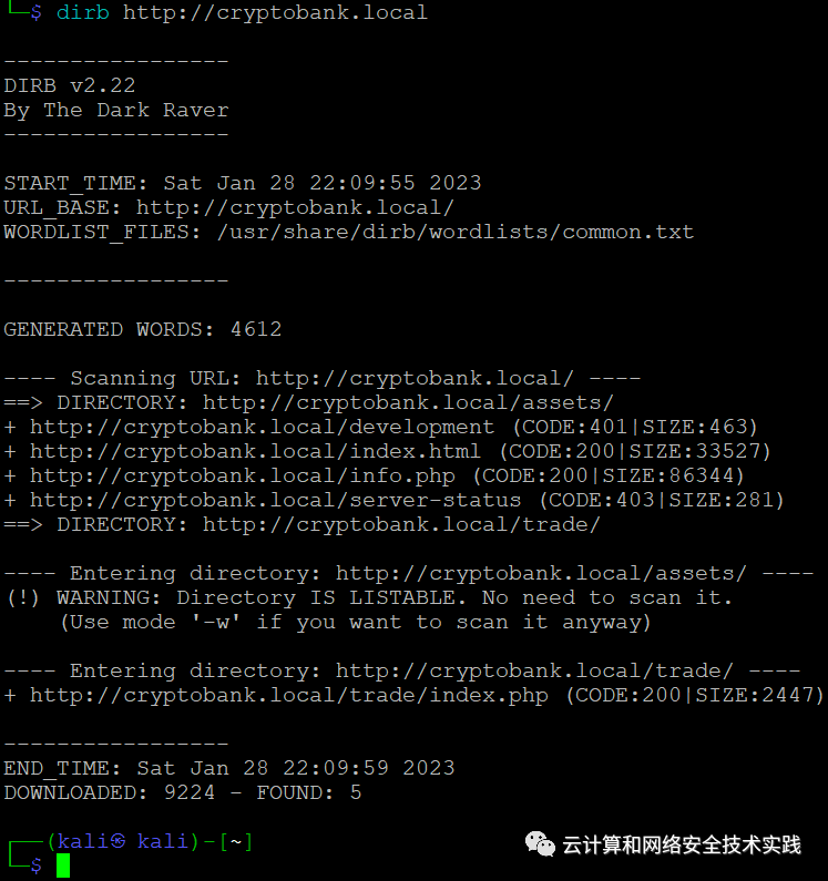 用域名对web服务做目录暴破,dirb http://cryptobank.local,
