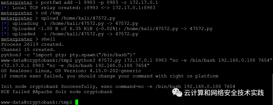 做个端口转发,portfwd add -l 8983 -p 8983 -r 172.17.0.1,