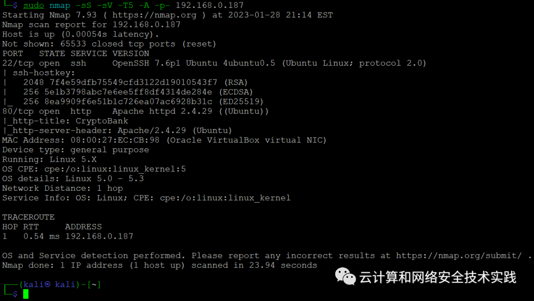 再继续做端口扫描,sudo nmap -sS -sV -T5 -A -p- 192.168.0.187,