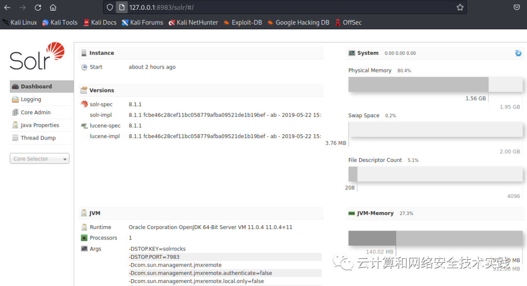 查看到本地端口服务,netstat -antp,172.17.0.1:8983,