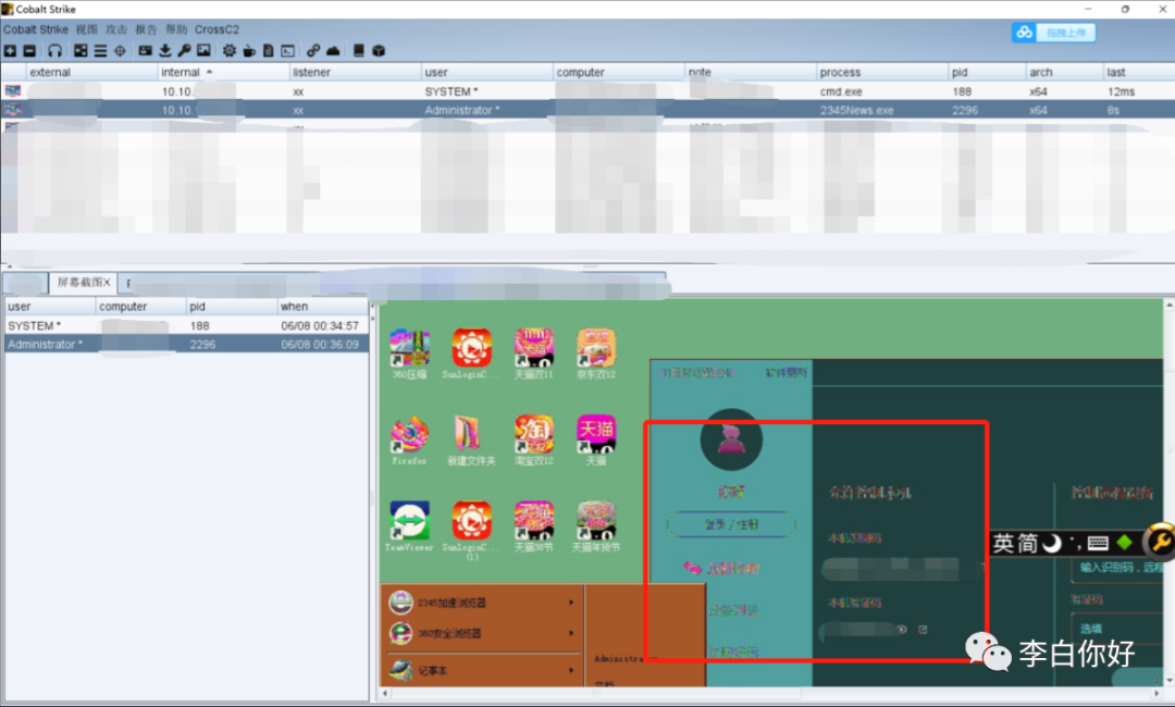 把msf会话转移到CS上,通过进程迁移把System权限变为Administrator权限,开启vnc看看屏幕吧。