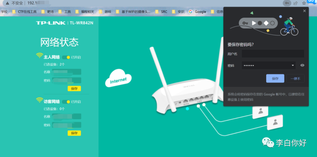 在这个WIFI的网段下面简单探测了一下,是没有什么设备的,但是我们再次用弱口令进入了该WIFI路由器的web管理界面。