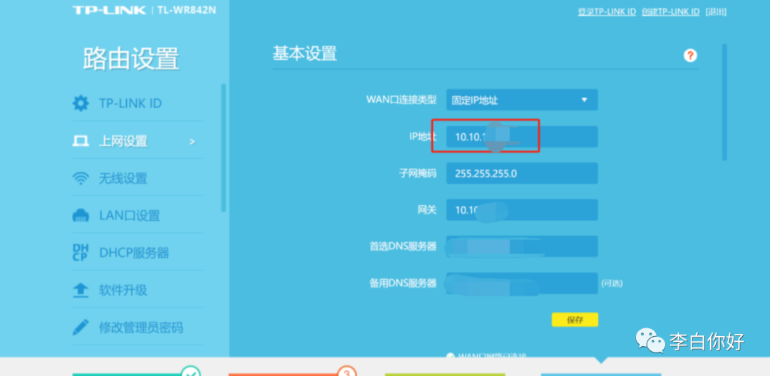 翻来翻去,发现该路由器配置了上一跳的IP 10.x.x.x