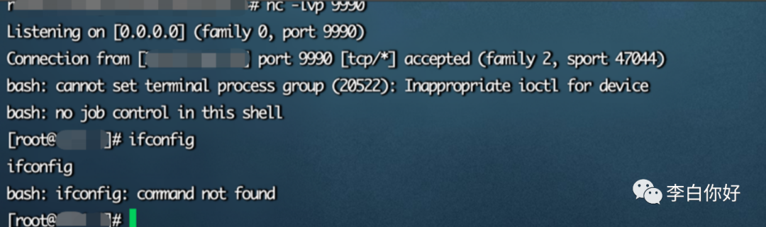 先curl测试一下是否出网,出网!那直接反弹shell到我的vps上,成功收到shell。