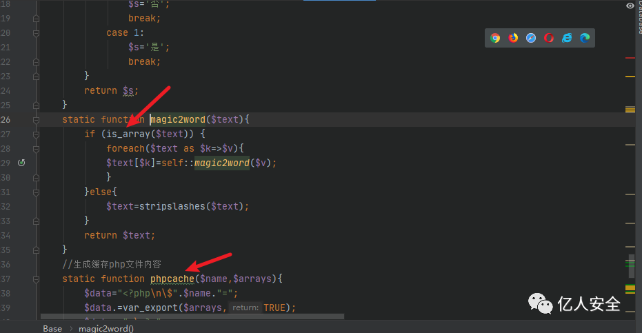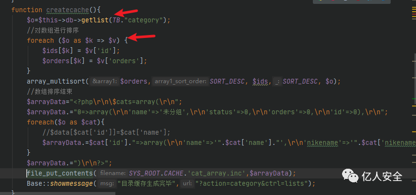 我们在搜索危险函数的时候发现一处很有可能getshell的地方,我们先看这里的$arrayData是否可控。
