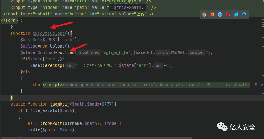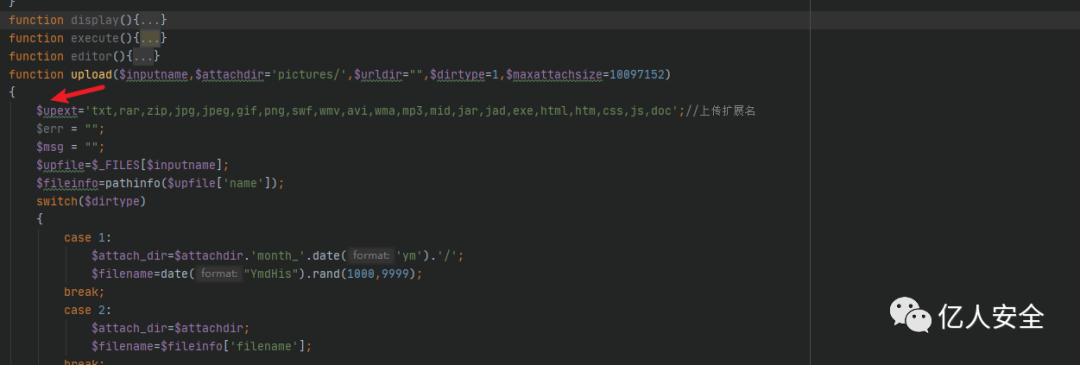在该方法的最上面定义了 $upext 变量,这里包含了可以上传的后缀名,也就是白名单,大致看了这些后缀没有可利用的。然后下面通过 $_FILES 接收上传文件,