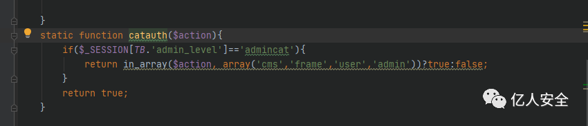 通过调试发现$_SESSION[TB.'admin_level']=admin,所以返回值为true恒成立,所以上面的代码逻辑会接着往下走