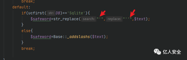 所以我们只能走上面的if条件,这里只要数据库为 Sqlite ,下面的单引号会被替换为两个单引号(当时以
