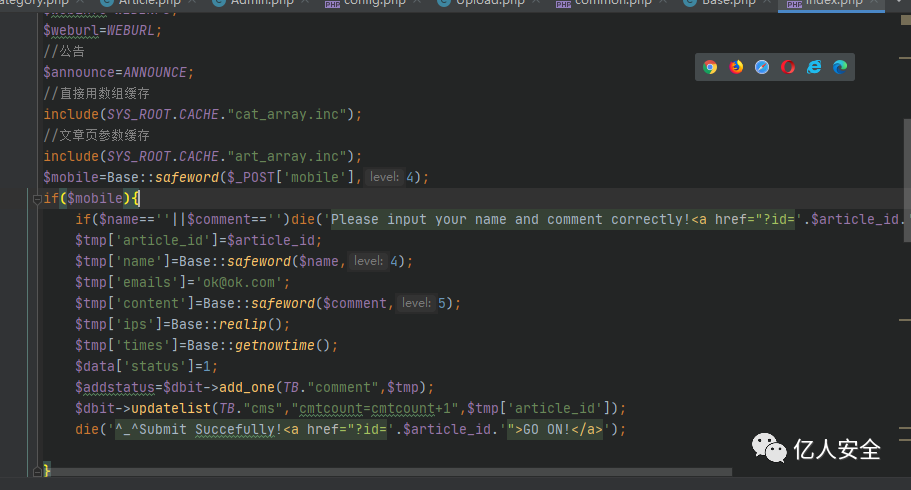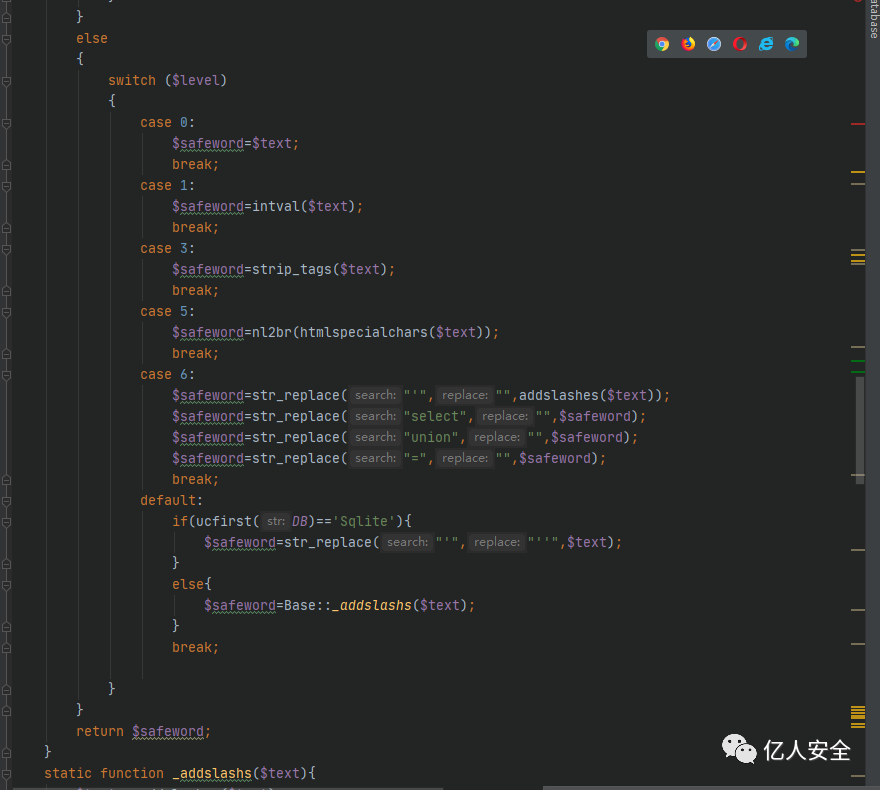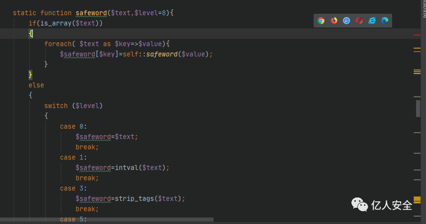 在 safeword() 方法中需要传入两个参数,一个是需要过滤的字符串,另一个参数则决定走哪个case。