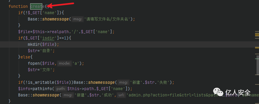 在 create() 方法中,首先接收文件名 name ,然后通过 isdir 来判断创建的是目录还是文件,然后分别做不同的操作进行创建。