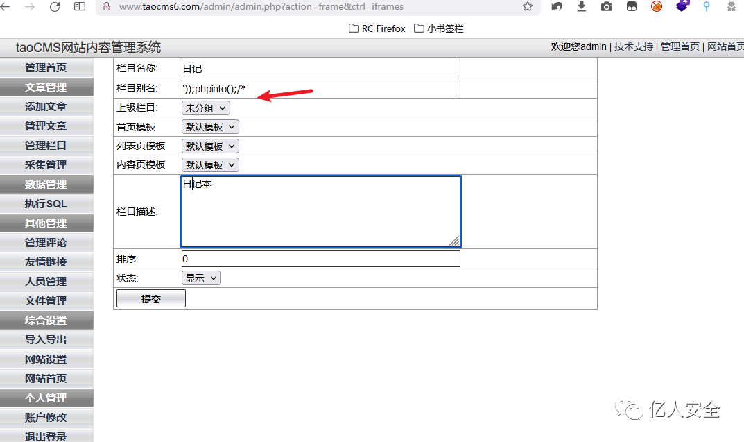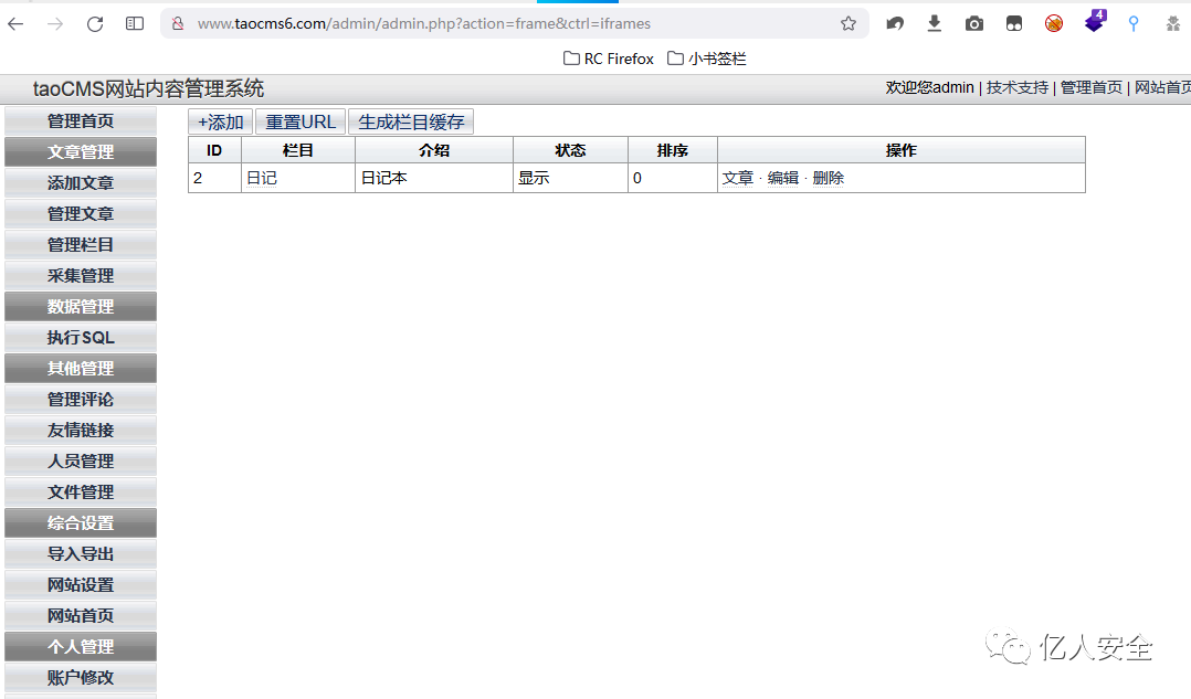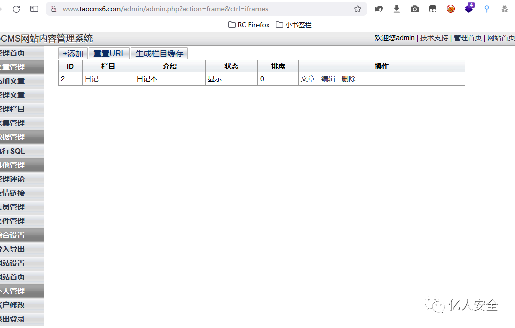 从数据内容可以看出这里的功能点其实就是 管理栏目 中的内容,这里就可以添加内容。
