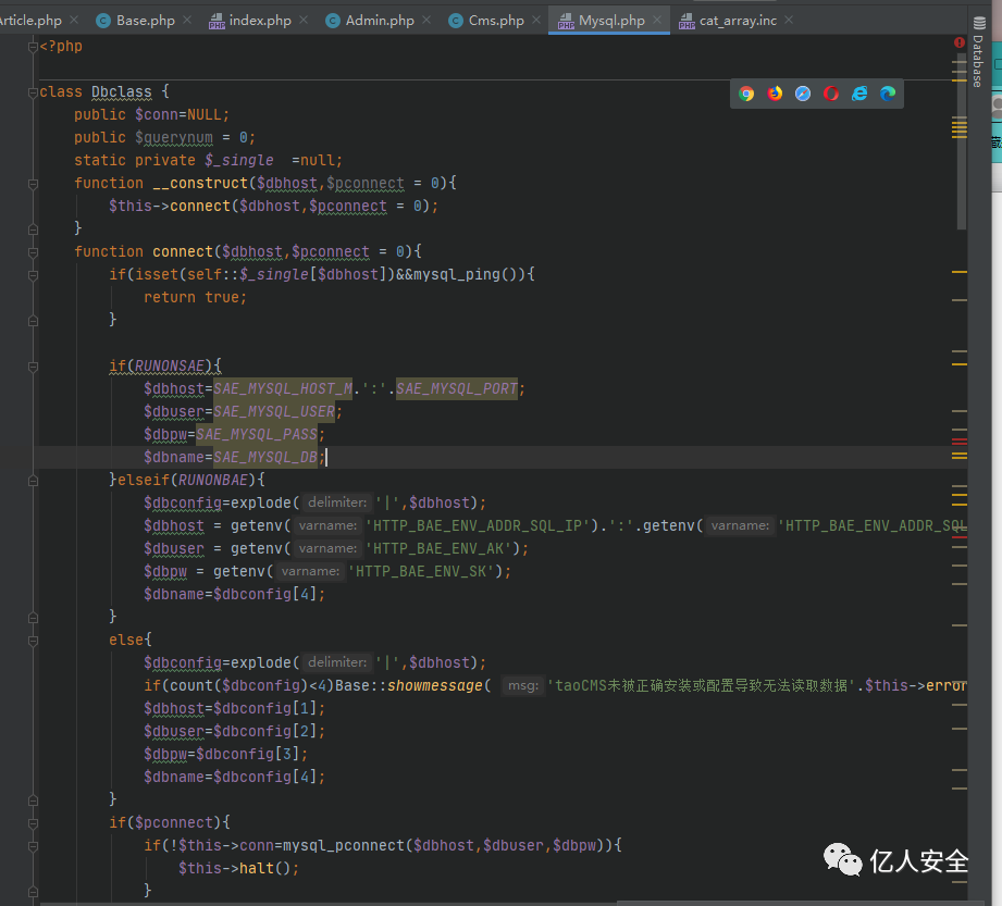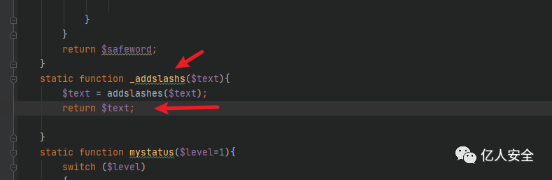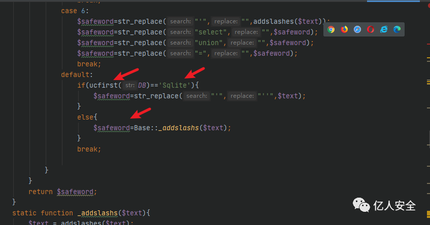为 Sqlite 是的话执行Sqlite的过滤代码,如果不是则走158行的else,,调用 Base::_addslashs() 方法,跟进该方法。