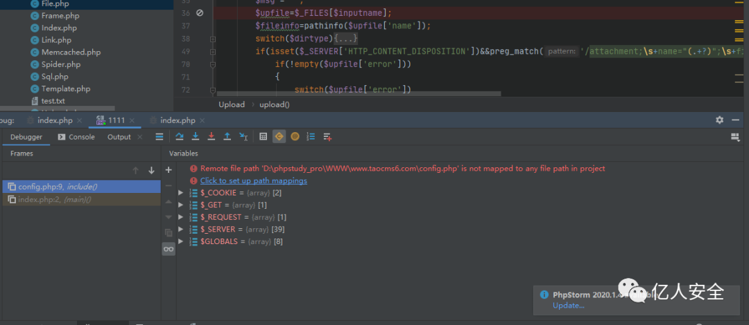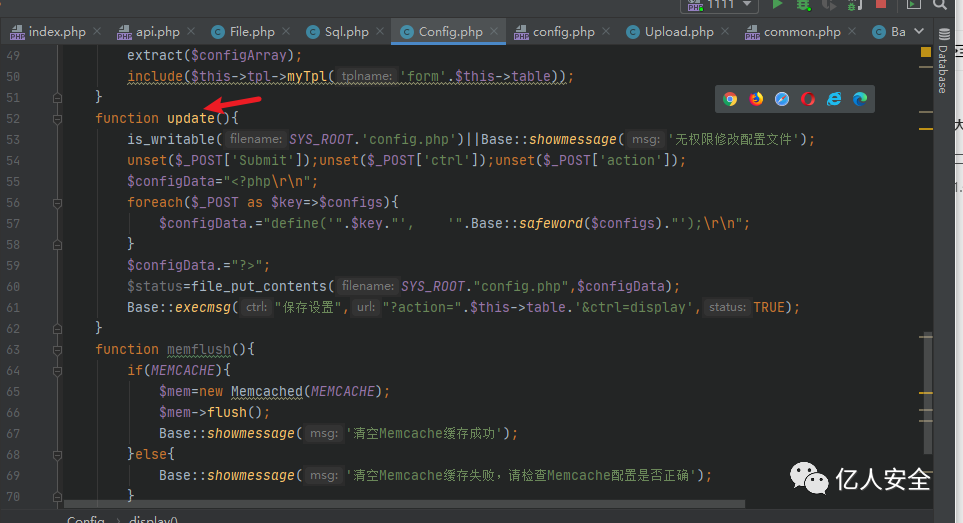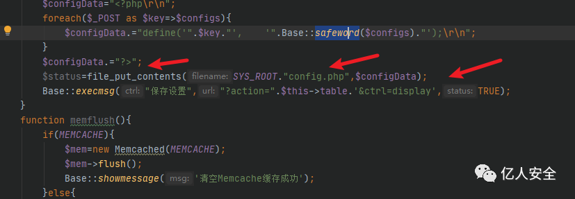 然后我们返回 upload() 方法的第60行,直接将过滤后的内容通过 file_put_contents() 写入到config.php中。