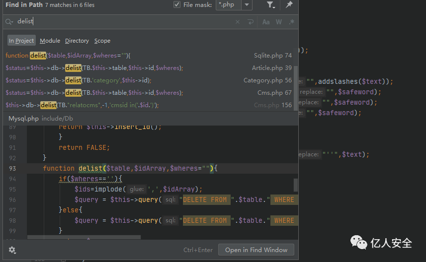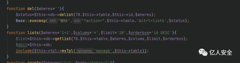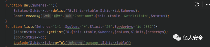 最后找到几个未过滤的函数方法:delist、getquery、updatelist、get_one、getlist