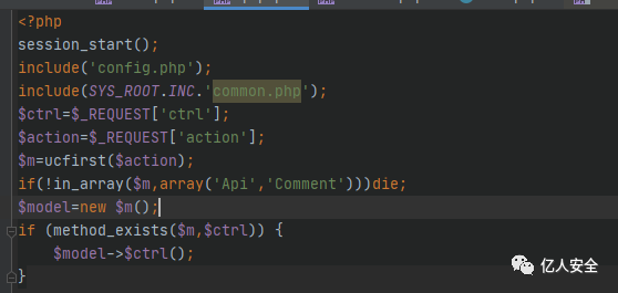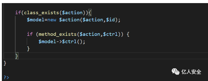 发现有两个方法,class_exists和method_exists,这两个函数是判断是否存在类和方法的,接下if内的语句判断,指导action是类名,ctrl是函数名,有点像路由
