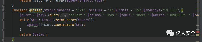 这里sql执行完之后会调用Base类中的magic2word方法,对结果是否为数组进行判断,如果是数组就会存入新的数组并且返回赋值给$datas数组,打印该数组可以发现注入的语句已经成功执行并返回了结果