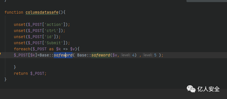 这里还是通过 safeword() 进行数据的过滤的,但是这里的 safeword() 方法在后续并没有起到过滤的效果。