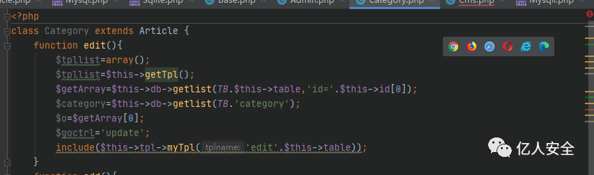 全局搜索getlis,在admin.php中找到edit方法存在getlist的调用,并且能够可控参数