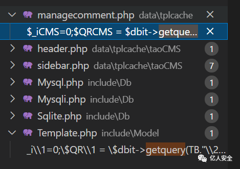 通过搜索该文件可以发现有好几处包含了该模板文件,所以我们这里就可以通过写入缓存文件getshell。