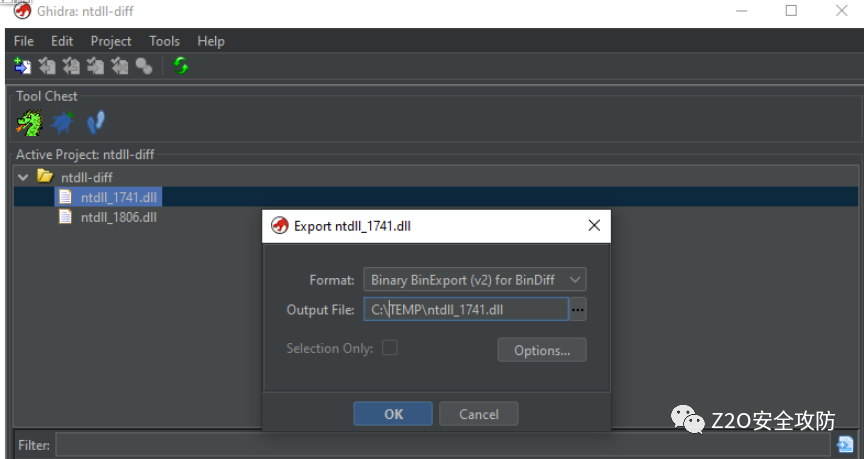 加载文件并分析它们后,我只是使用 Ghidra 的BinDiff 扩展以适当的格式导出结果。