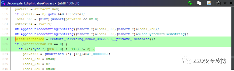 在前面的部分中,我们看到 的结果Feature_Servicing_2206c_38427506__private_IsEnabled()决定了加载程序将使用的有关受保护进程和已知 DLL的逻辑。乍一看,这个函数似乎并不复杂,那么让我们看看我们可以从中学到什么。