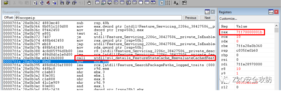最后,为了更好地衡量,我们还可以手动设置Feature_Servicing_..._featureStateto 的值0并检查返回的值wil_..._ReevaluateCachedFeatureEnabledState(...)以确保它是0x1b。