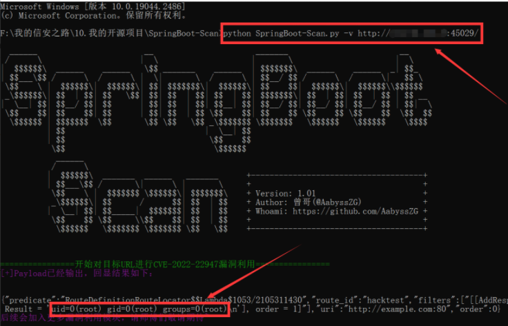 python3 SpringBoot-Scan.py -f url.txt4、对单一URL进行漏洞利用